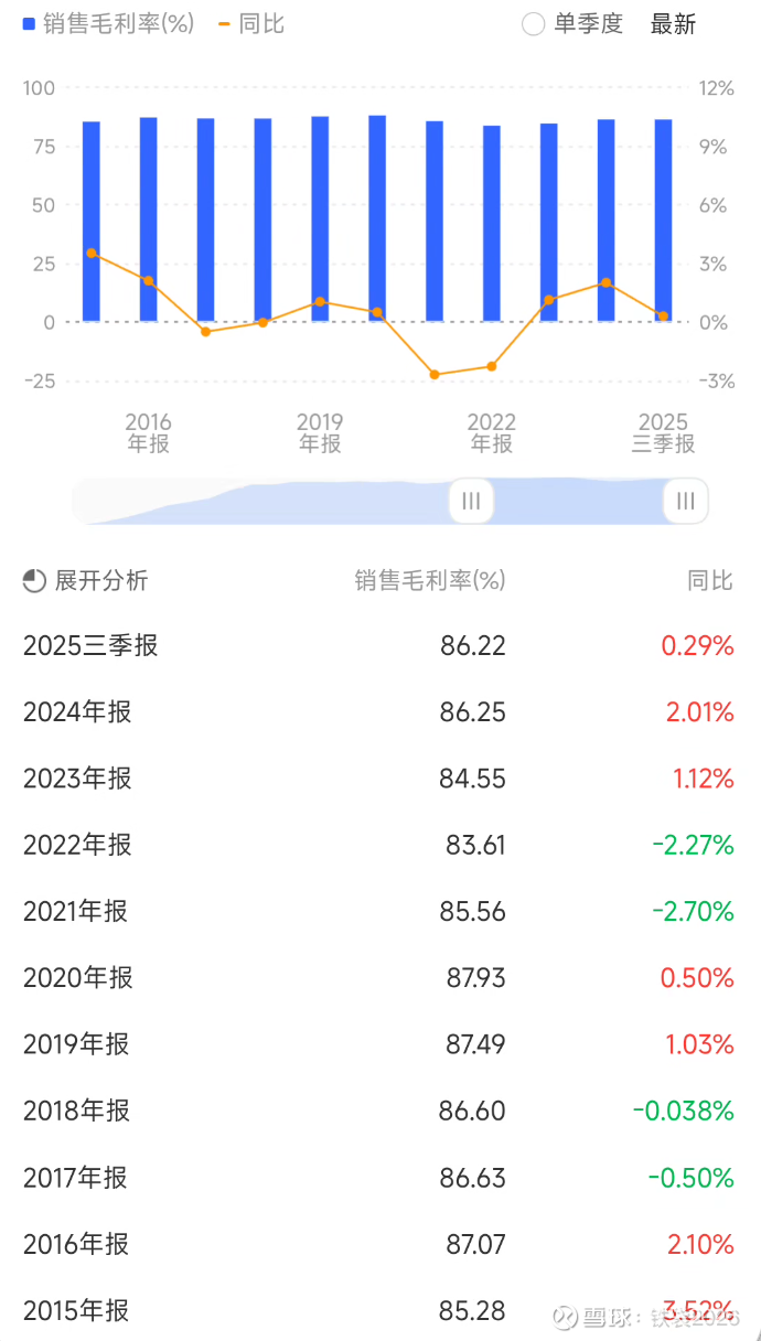 毛利率: 长期维持在 83%-87% 的极高水平。即便在集采压力最剧烈的年份,毛利率也仅微调至83.6%,这证明了恒瑞在产业链上的强势话语权和产品的高护城河。