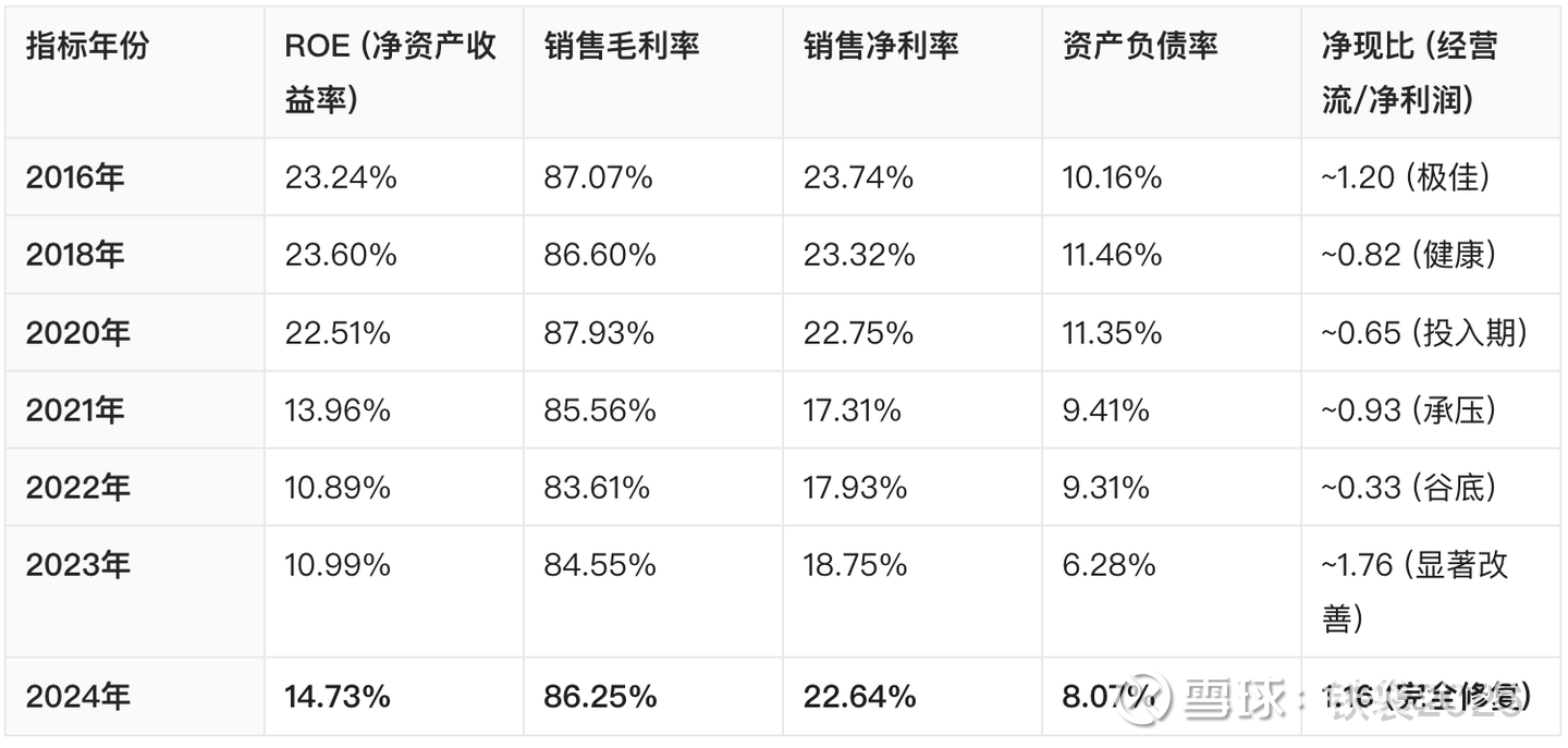 定性结论: 2022年是恒瑞的“业绩底”和“逻辑底”。2024年的数据(特别是ROE和净现比的同步回升)宣告了其转型基本成功。