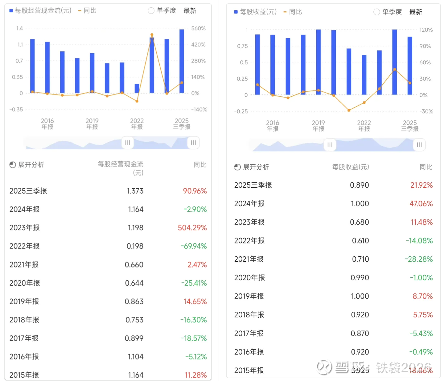 净现比的回归: 2024年每股经营现金流(1.16元)已超过EPS(1.00元),这种“高质量增长”是长期持有的底气。