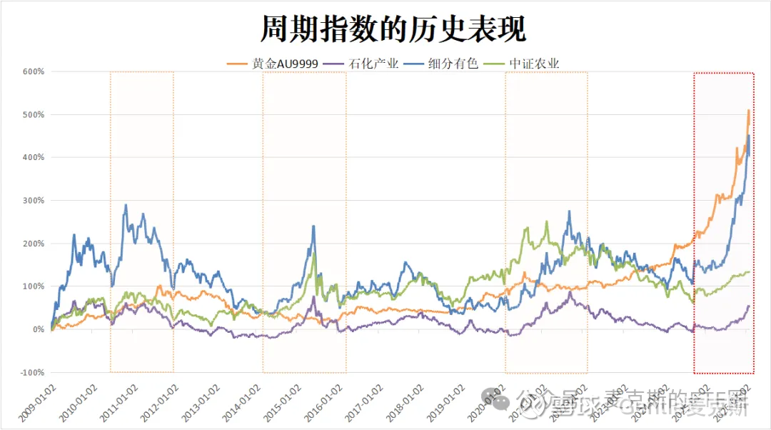 首先看一个结论:像黄金、工业金属、原油这些具有周期属性的大宗商品,每一次周期都是以年为单位计算的。