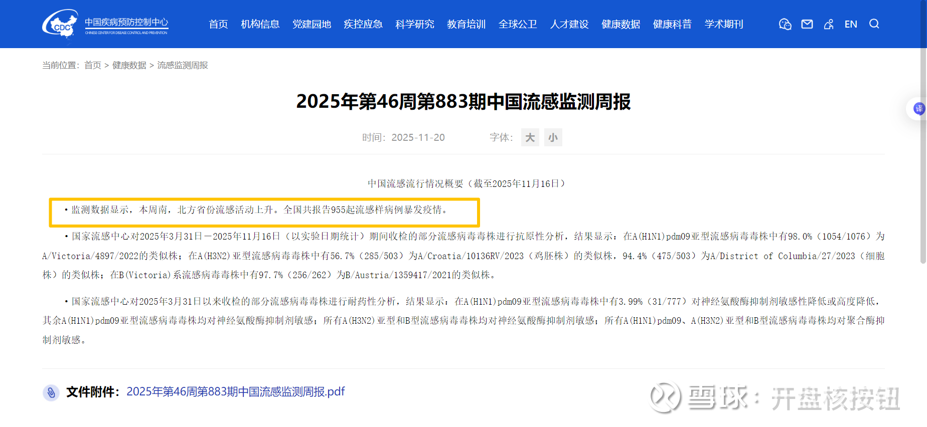 1. 疫情发展曲线:行情的核心观测点。最简单的方法就是每周盯着中国疾控中心发布的流感周报。专家分析这波行情大概率能延续到疫情达峰前后(大约12月底到1月初)。但如果疫情数据提前掉头向下,那就要打起精神,小心行情降温了。