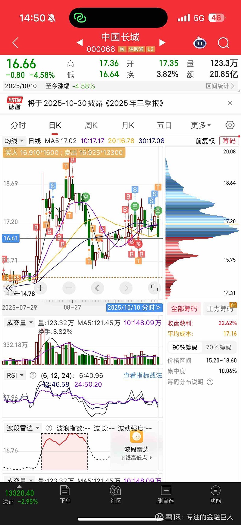 收在了八月启动的高点 也是后面反复测试的一个支撑位16.6 如果下个交易日继续下破就麻烦了 但也可能是启动主升前的洗盘