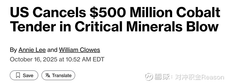 美国国防部取消了最高达5亿美元的钴采购招标, 美股稀土矿股全线承压中...,