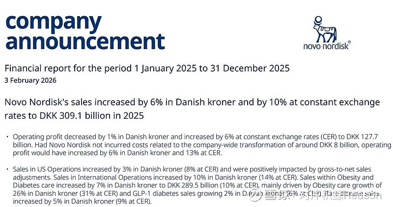 NVO 的财报一下子从衰退变成增长放缓。