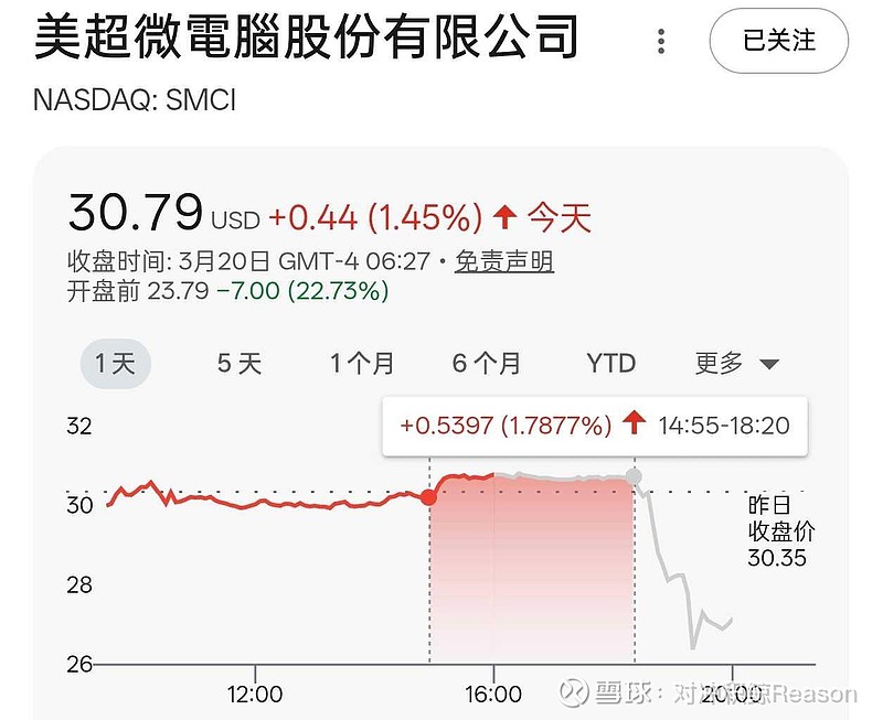 $超微电脑(SMCI)$ 盘前现在暴跌 22%。