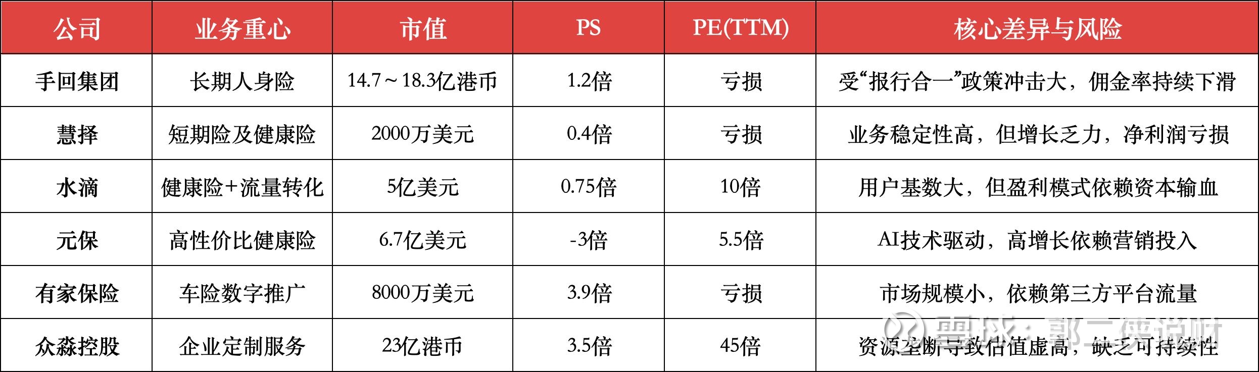 在港股上市的众淼控股,是背靠海尔集团的保险代理机构,聚焦企业客户定制化服务。估值高达45倍,但业务增速较慢,估值有泡沫。