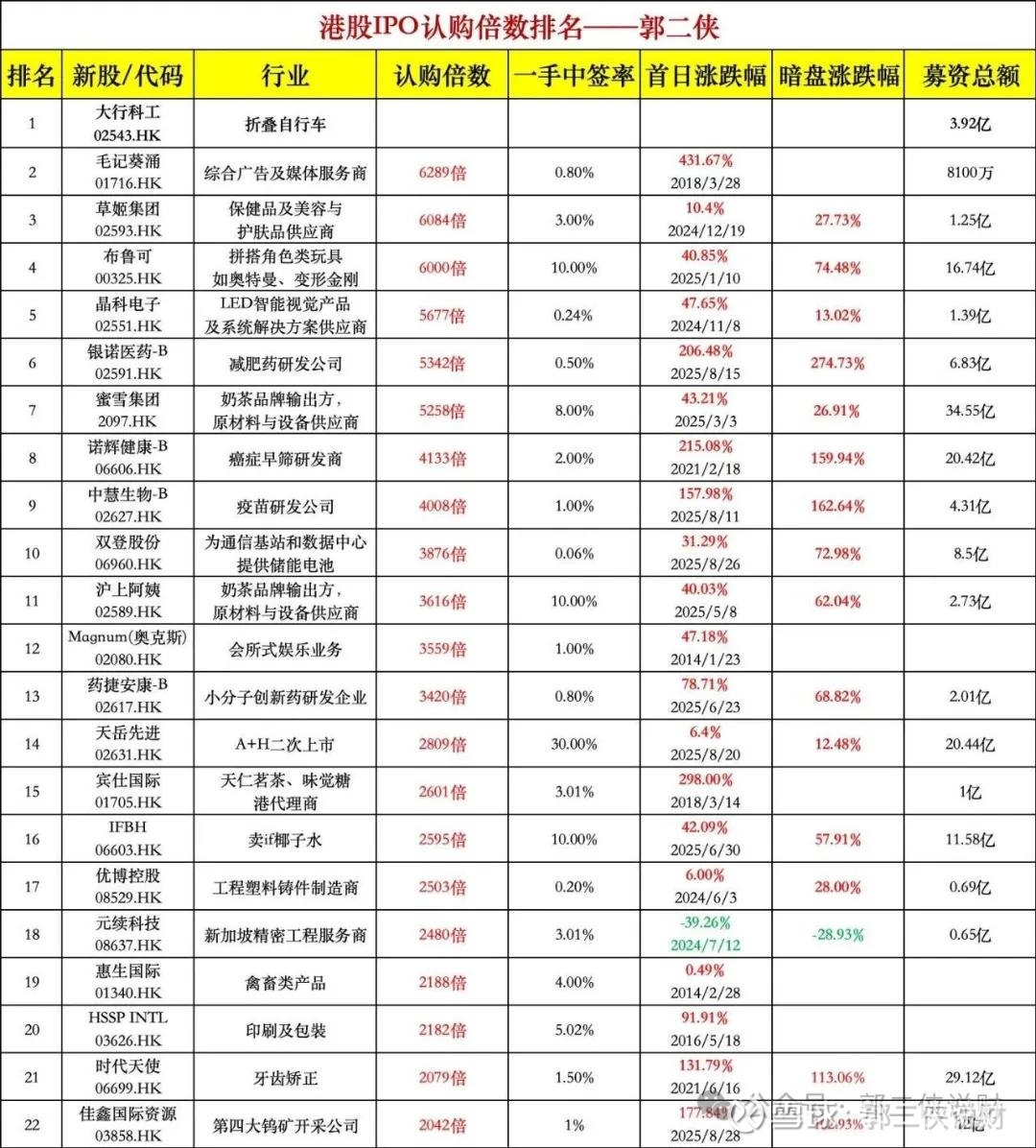 我知道大家都想对标2018年3月上市的前“超购王”毛记葵涌的首日上市表现,但毛记募资总额才8100万,流通盘小,自然炒的飞起。草姬集团能超购6000多倍除了募资额小之外,还有香港明星郭晋安站台加持,这两只票的共同点都是蚊型股,没啥基本面可言。
