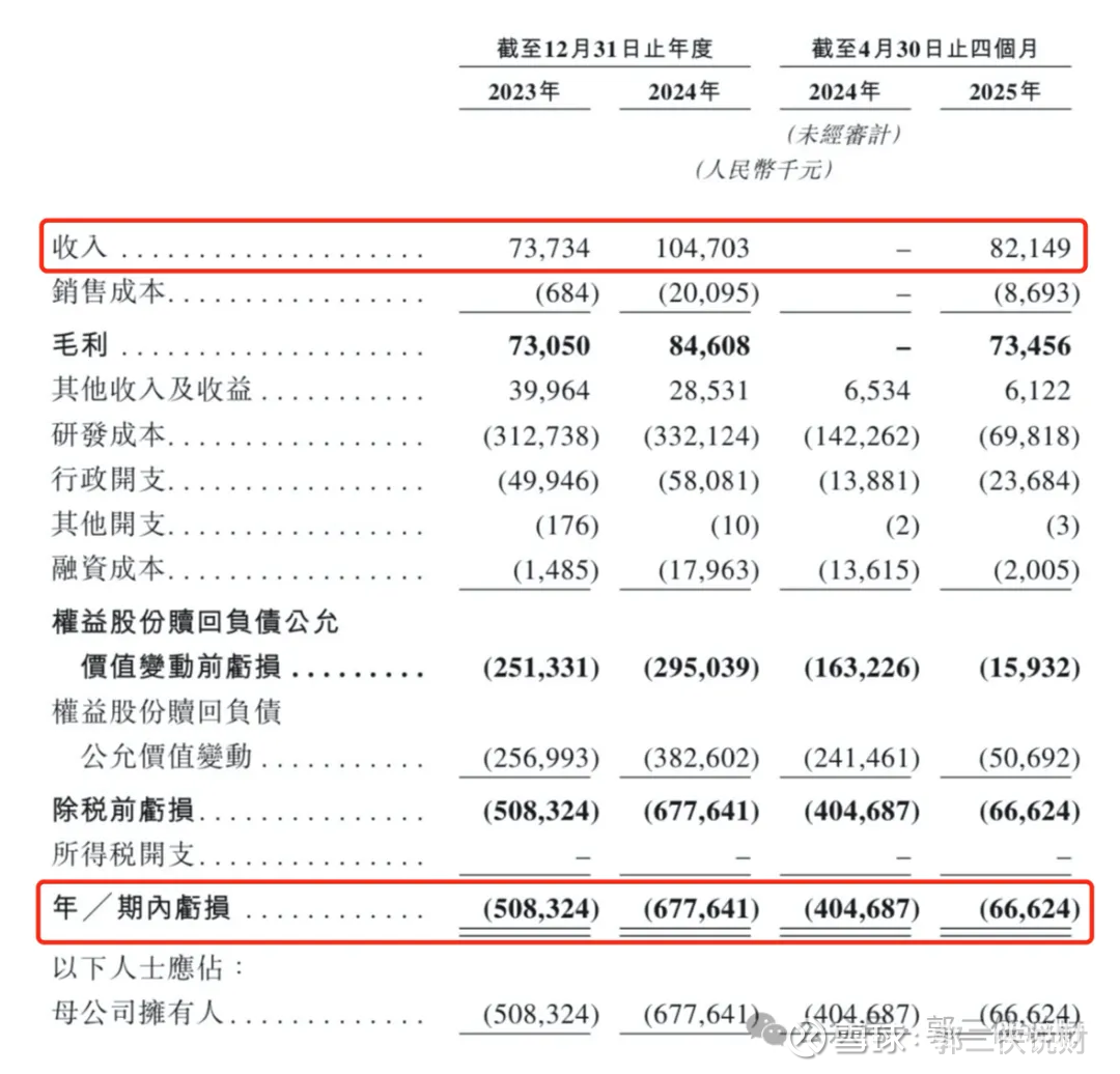 财务数据显示:在过去的2023年、2024年和2025年前四个月,劲方医药的营业收入分别为人民币0.74亿、1.05亿和0.82亿元,相应的净亏损分别为人民币5.08亿、6.78亿和 0.66亿元。