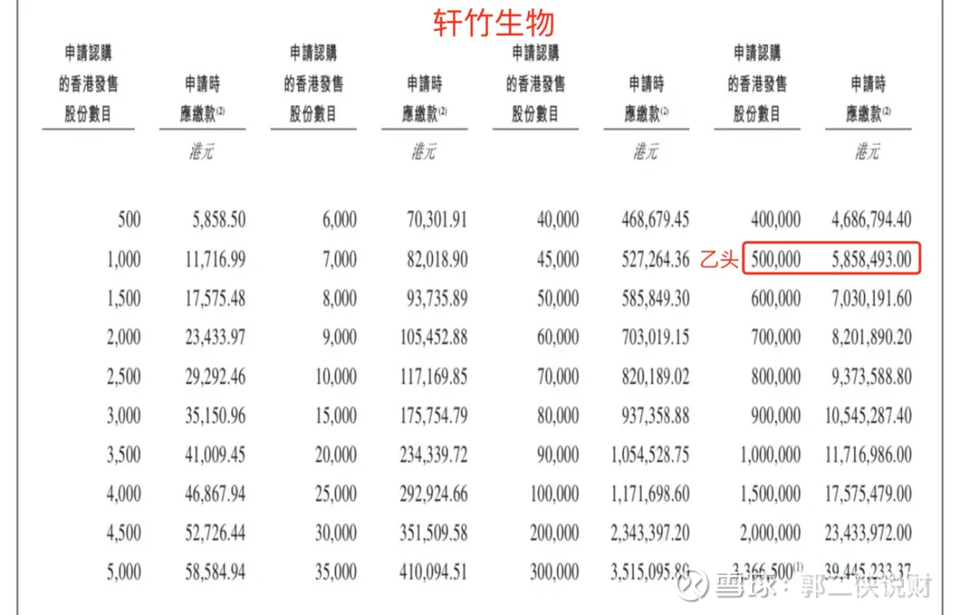 轩竹生物招股首日孖展150倍,最终大概率会超购3000倍,甲乙组各6733手。按照20万人申购算,预估一手中签率低于1%,甲组全员抽签。