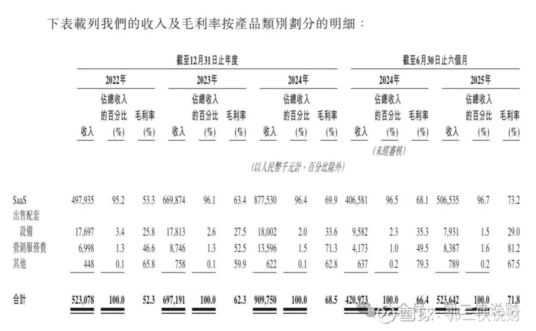 聚水潭的收入主要来自SaaS服务,这是公司最核心的业务,在授权客户使用公司的SaaS产品前,通常要求客户提前付款,并向客户收取年费(提供不限单量)或基于单量的费用。