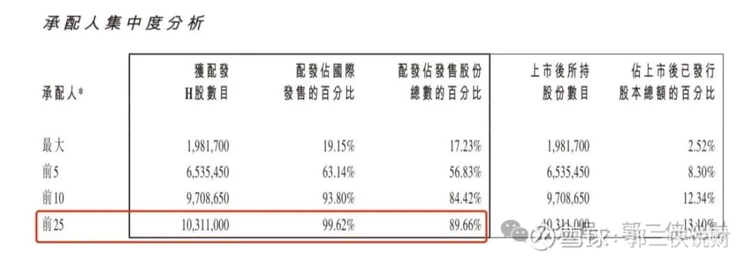 从海西新药公布的新股配发结果来看,国配90%的份额仅有46名承配人,这意味着无论有多少人参与国售的申购,最终只有这46人获得了股份分配。所以我们可以看到前25大承配人占国配总数的99.62%,股权高度集中,这是准备控盘暴力拉升的节奏。