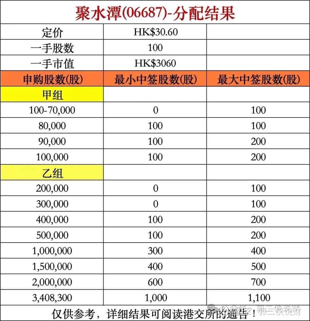 上周五下午17:00后各券商陆续公布了聚水潭的中签结果,但详细信息要等明天暗盘交易结束后,晚上22点港交所官方网站披露易发布的新股配发结果公告。