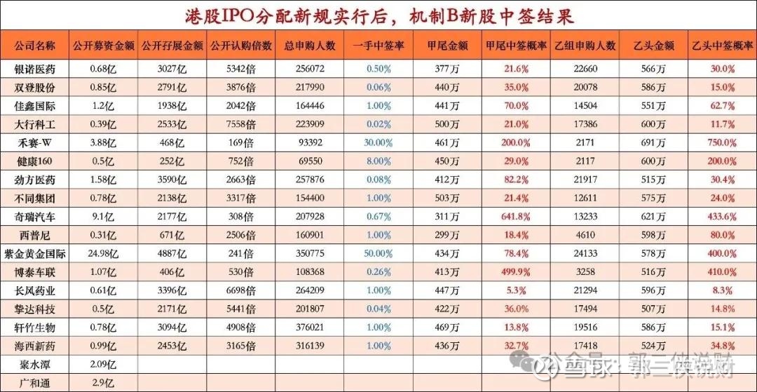 根据港股IPO分配新规实施后的17只机制B新股中签结果来看(包括聚水潭),在不考虑资金利用效率的情况下,有8只新股甲尾总中签率比乙头高。如果考虑资金利用效率,有11只新股打新甲尾更划算。但如果都只打甲尾的话,也有可能错过像紫金黄金这样的大肉签,乙头的中签概率远远超过甲尾。