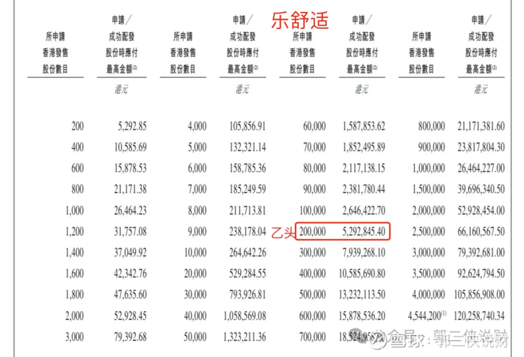 乐舒适目前孖展20倍,最终大概率会超购1500倍,甲乙组各22721手。按照25万人申购算,预估一手中签率3%,甲组全部抽签。