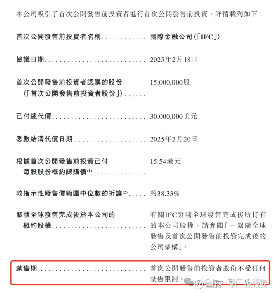 值得注意的是,公司首次公开发售前投资者股份不受任何禁售限制,这意味着前期投资者IFC(国际金融公司)可以在上市后自由处置这些股份。