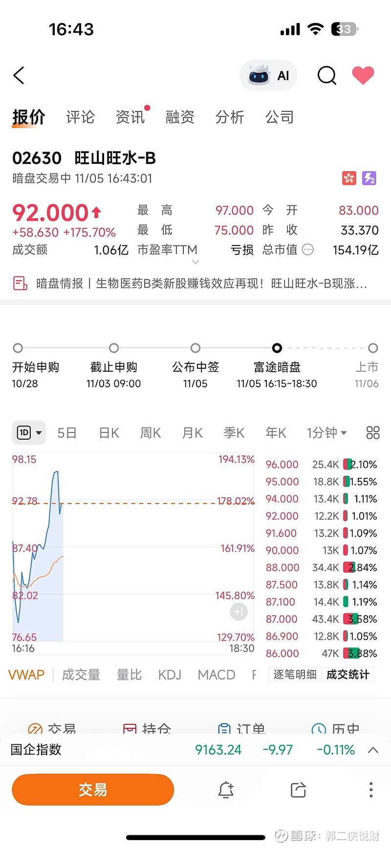 是真旺,开盘暴涨175%,一手净赚1.1万。