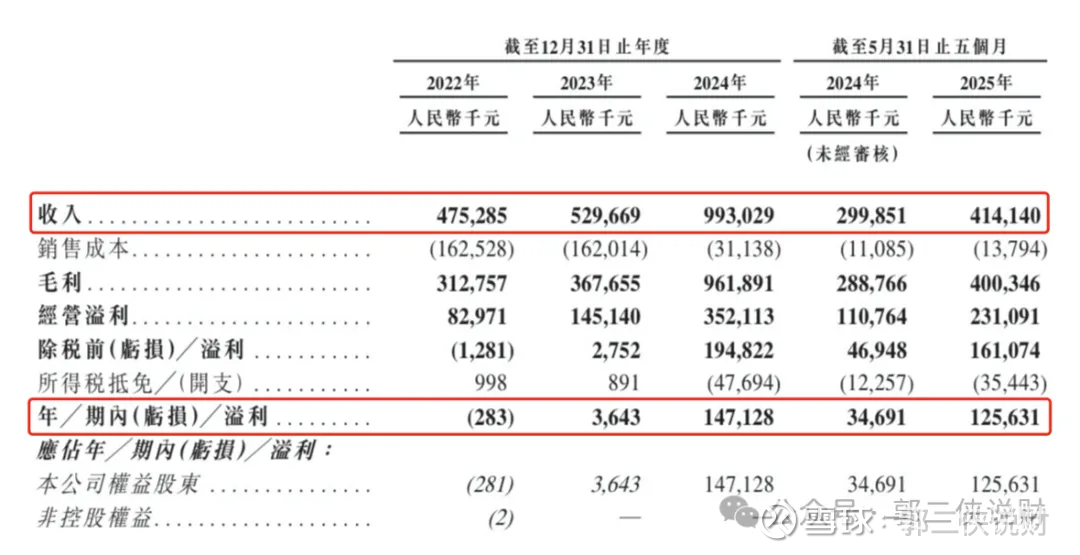 财务数据显示:2022年至2024年,公司收入从4.75亿元增长至9.93亿元,年复合增长率达到44.55%。2025年前五个月,收入继续同比增长38.1%,达到4.14亿元。