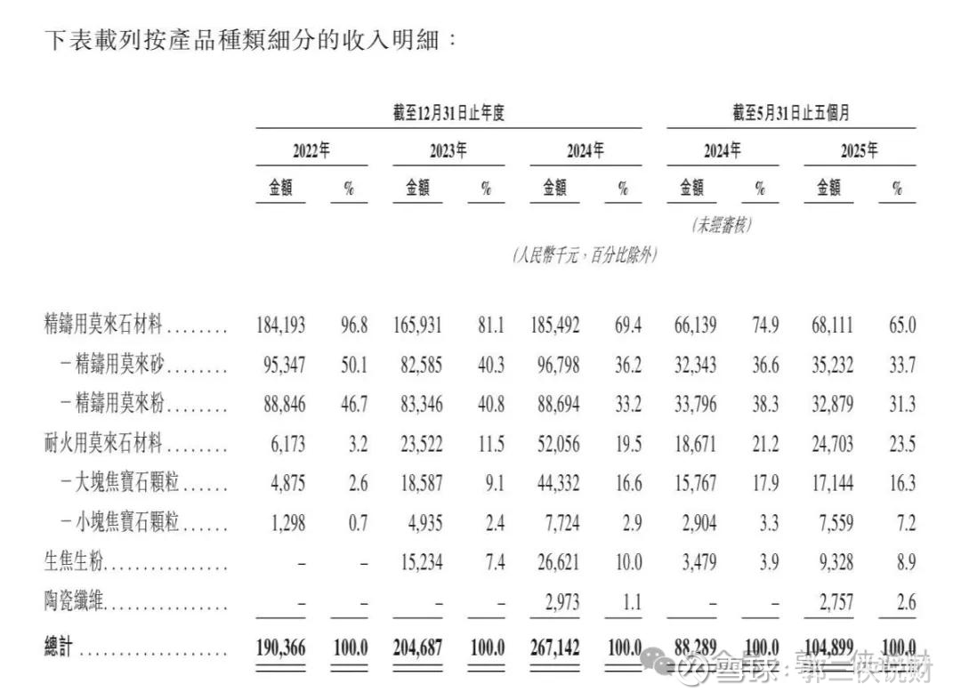 精铸用莫来石材料是公司的核心产品,主要应用于精密铸造工艺中的型壳制作。这些型壳是生产汽车涡轮增压器、航空发动机叶片、医疗设备零件等高端铸件的关键材料。该产品2025年前5个月贡献了公司65%的营业收入。