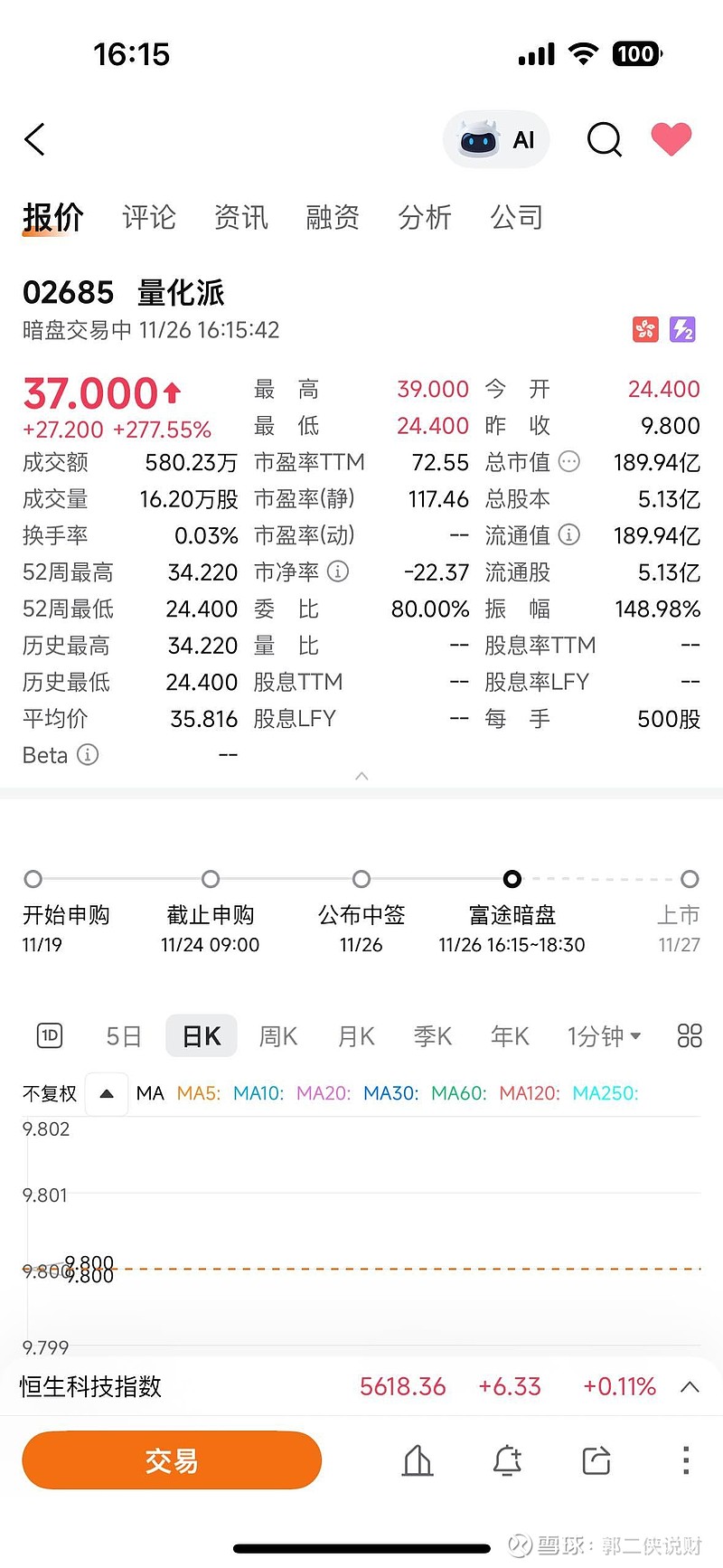 开盘暴涨280%,中签一手,可以赚1.3万。