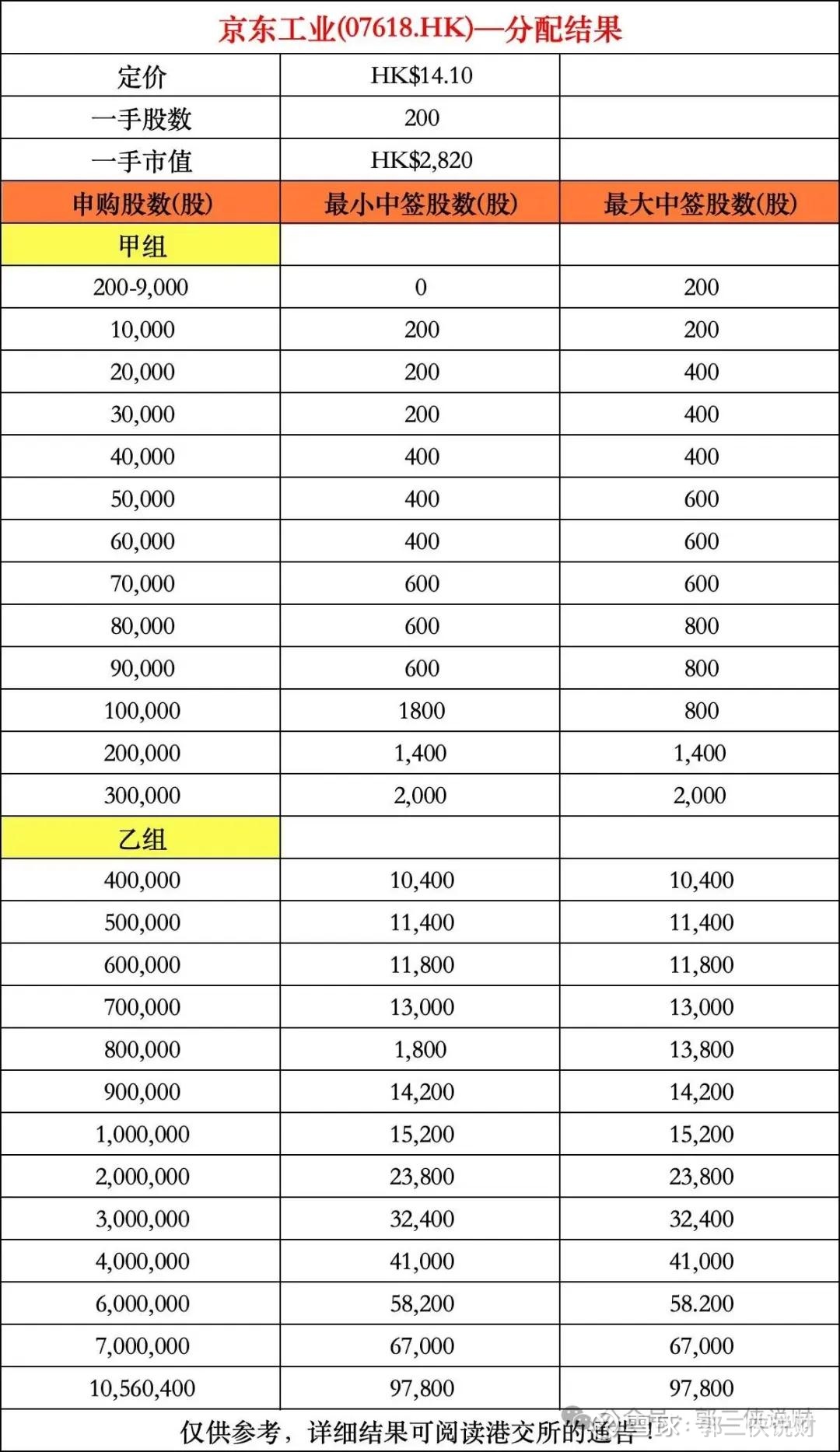 京东工业以招股价12.7~15.5港元的中间定价14.1港元,一手市值2820港元。甲组申购50手稳中一手,甲尾中签10手,乙头中签52手,货值14.7万。