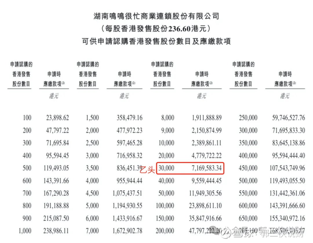 鸣鸣很忙目前孖展275倍,最终大概率会超购1200倍,甲乙组各7050手。申购人数按照25万人算,预估一手中签率1%,甲组全部抽签。