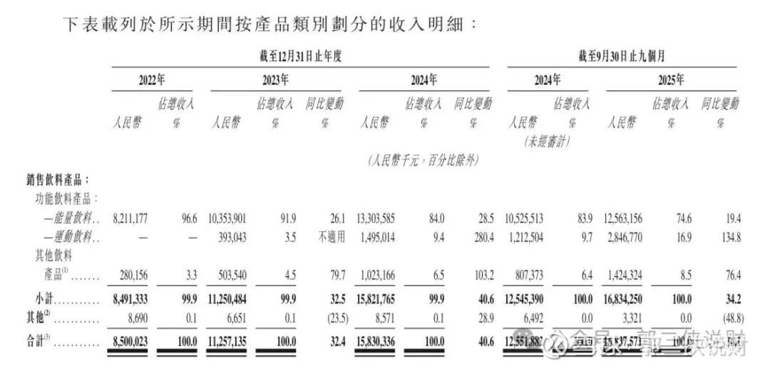 特别值得注意的是“东鹏补水啦”的爆发式增长。这款电解质饮料在2025年上半年就实现了14.93亿元的收入,追平了2024年全年的销售额,同比增长超过200%。电解质饮料的收入占比从2024年同期的6.05%大幅提升至16.91%,已经成为公司名副其实的第二增长曲线。