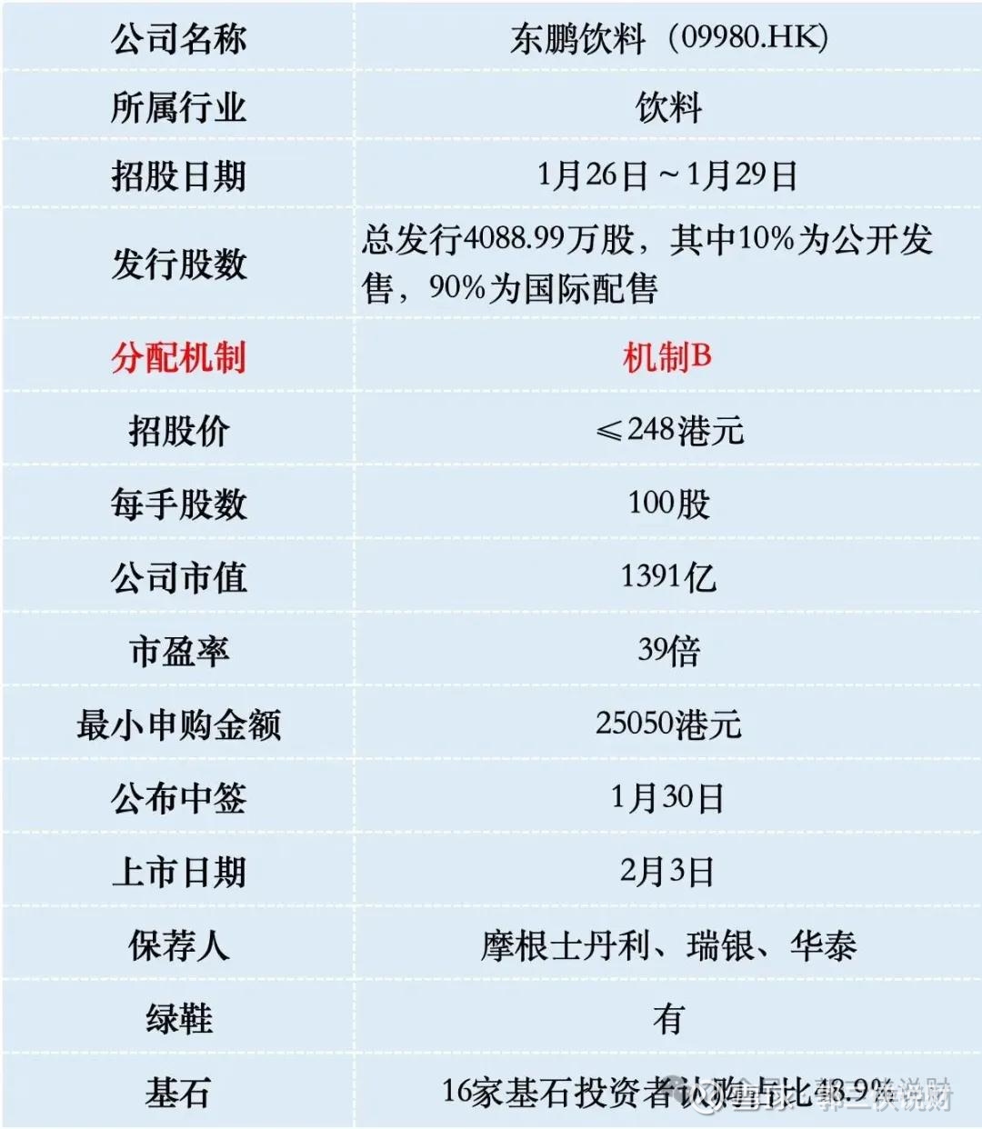 密切关注A股东鹏饮料的股价走势,若在招股截止前股价跌破240元,则评级下调为放弃。