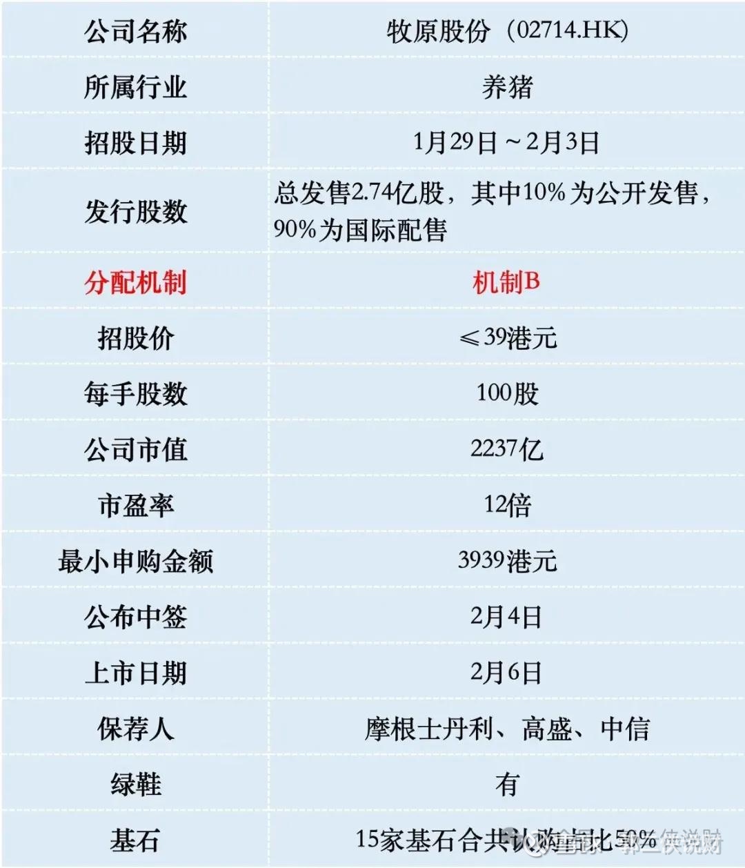 密切关注A股牧原股份的股价走势,若在招股截止前股价涨至50元,则评级上调为梭哈;若跌破42元,则评级下调为放弃。