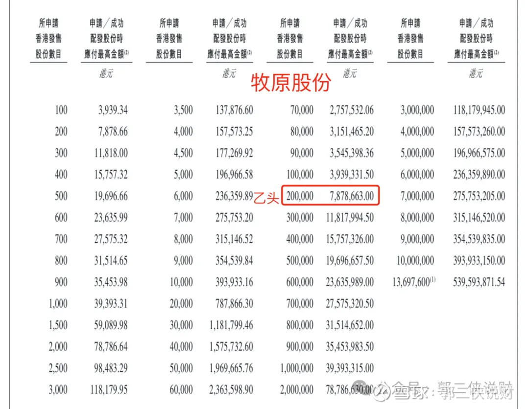 牧原股份乙组按2000人申购算,预估乙头中签40~50手。
