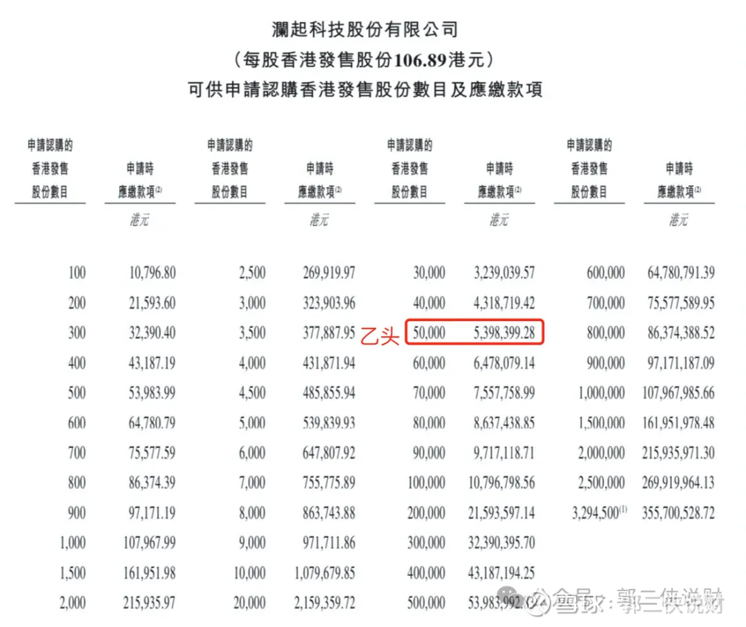 澜起科技目前孖展121倍,最终大概率会超购500倍,甲乙组各32945手。申购人数按照15万人算,预估一手中签率5%,甲尾稳中一手。