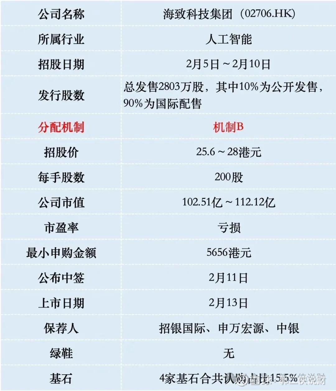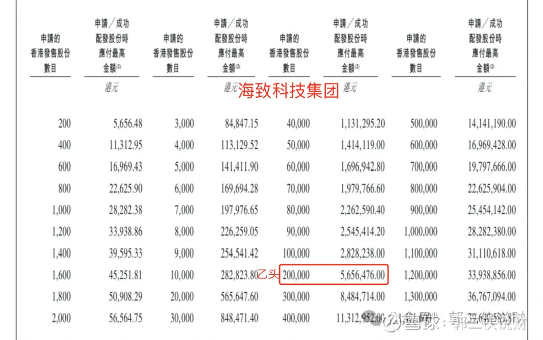 海致科技乙组按3000人申购算,预估乙头中签1~2手。