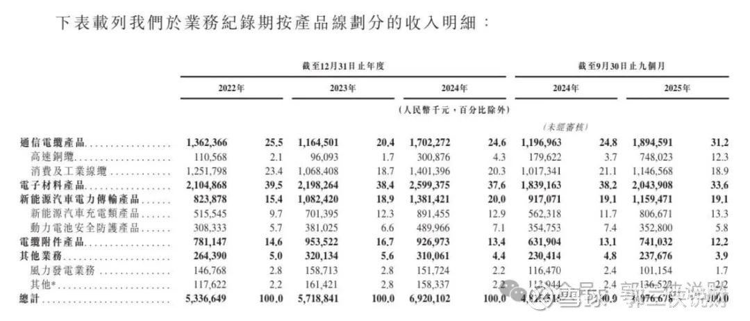 通信线缆业务紧随其后,占比31.2%,是公司当前增长最快的引擎。 这块业务的核心是应用于AI数据中心和服务器的高速铜缆。随着全球AI算力建设的爆发,这类用于连接高性能芯片、进行高速数据交换的线缆需求激增,该业务前三季度营收同比激增62.46%。