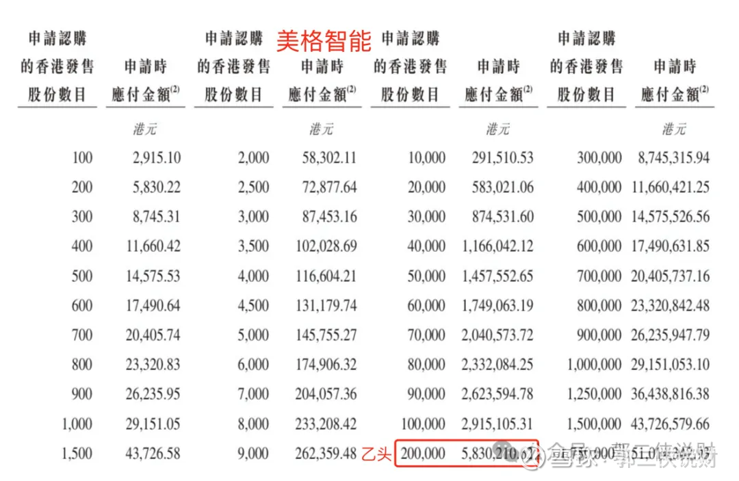 美格智能目前孖展14倍,最终大概率会超购1200倍,甲乙组各17500手。申购人数按照15万人算,预估一手中签率5%,甲组全部抽签。