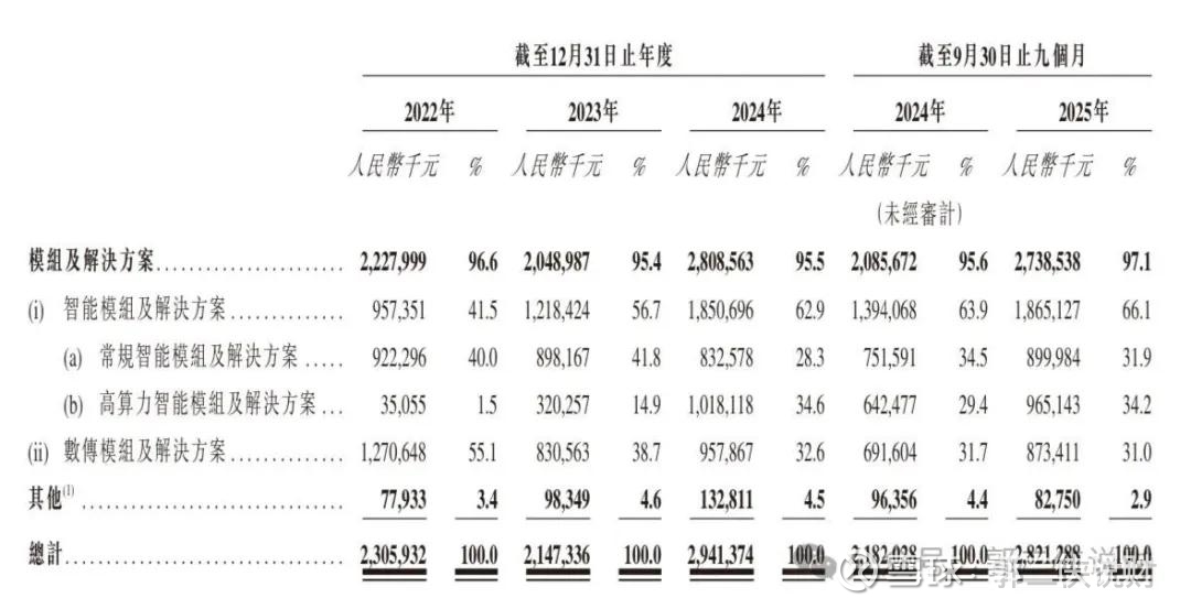 不过这里面有个重要变化,高算力智能模组正在成为新的增长引擎。这部分业务收入占比从2022年的1.5%,猛增到2025年前9个月的34.2%。