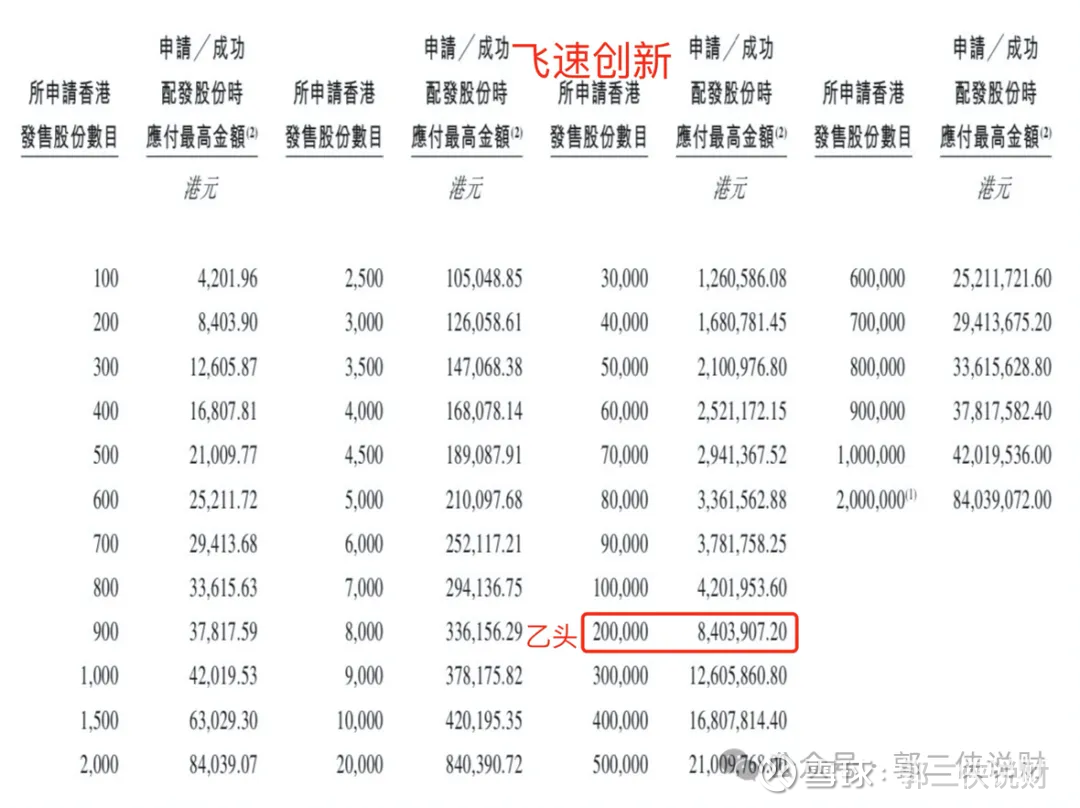 飞速创新目前孖展118倍,最终大概率会超购1500倍,甲乙组各2万手。申购人数按照20万人算,预估一手中签率3%,甲组全部抽签。