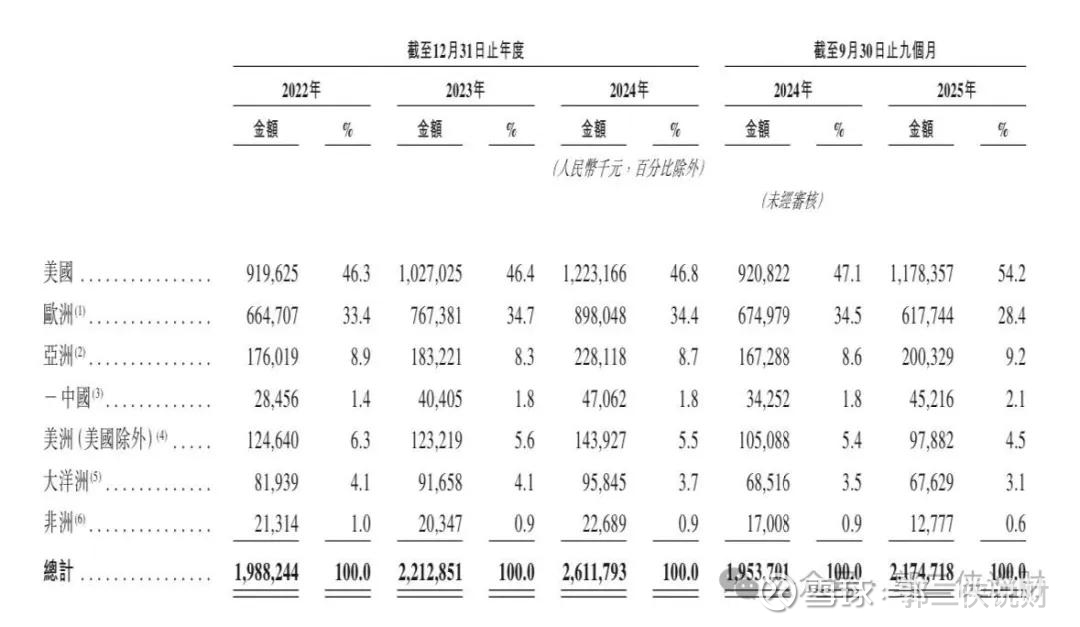 美国是最大市场:2024年,美国市场贡献了公司46.8%的收入。2025年前三季度,这个比例进一步上升到54.2%。也就是说,公司超过一半的收入来自美国。
