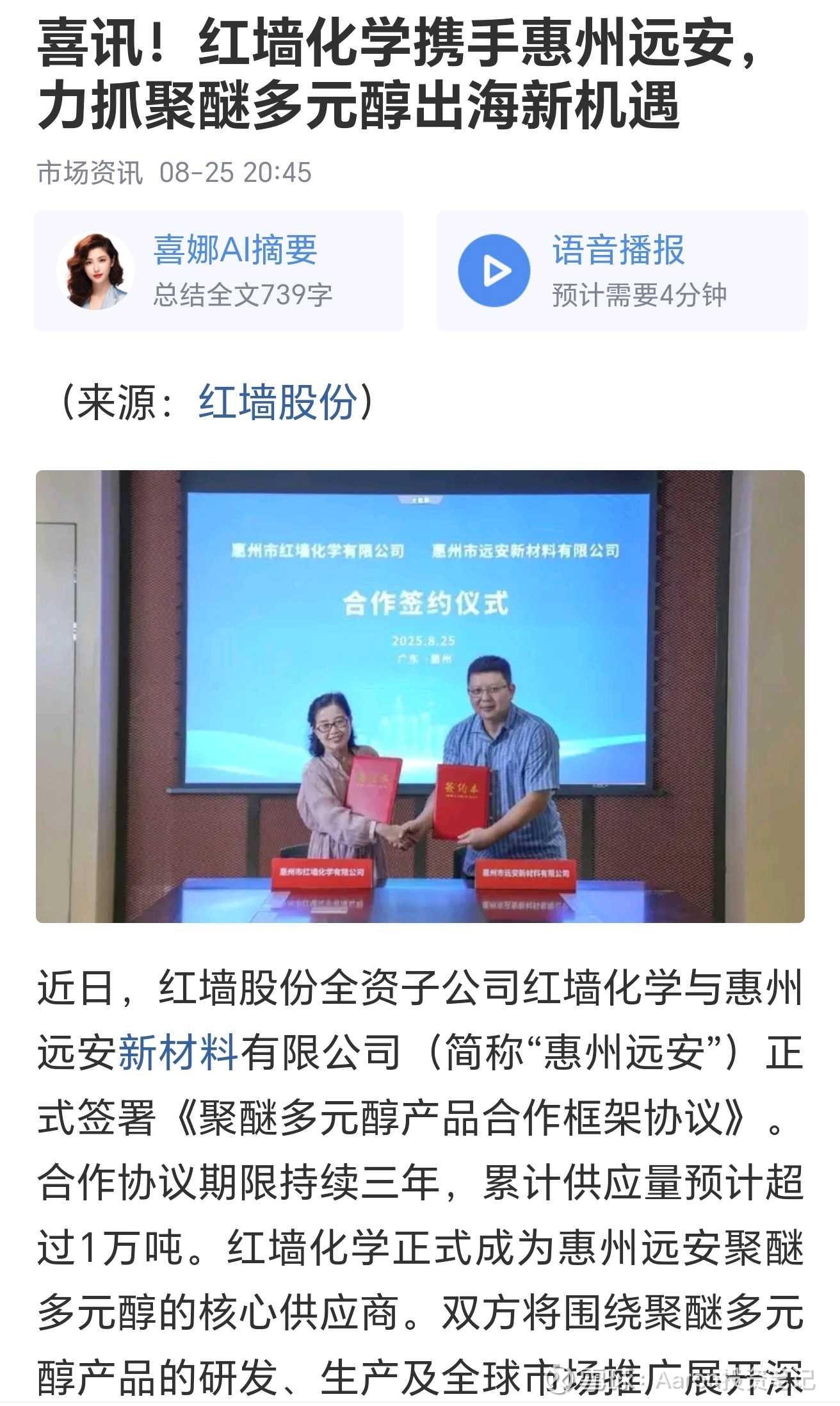 聚醚多元醇:长华化学,红墙化学(红墙股份)$红墙股份(SZ002809)$ $长华化学(SZ301518)$
