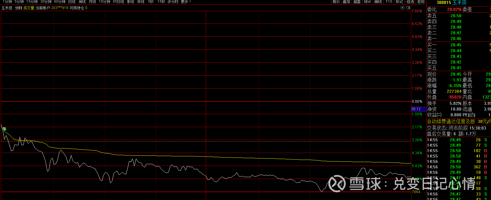 因为想搞把大的,所以我开盘止盈了玉禾田和东阳光!直接上了非卖股的长飞!看图: