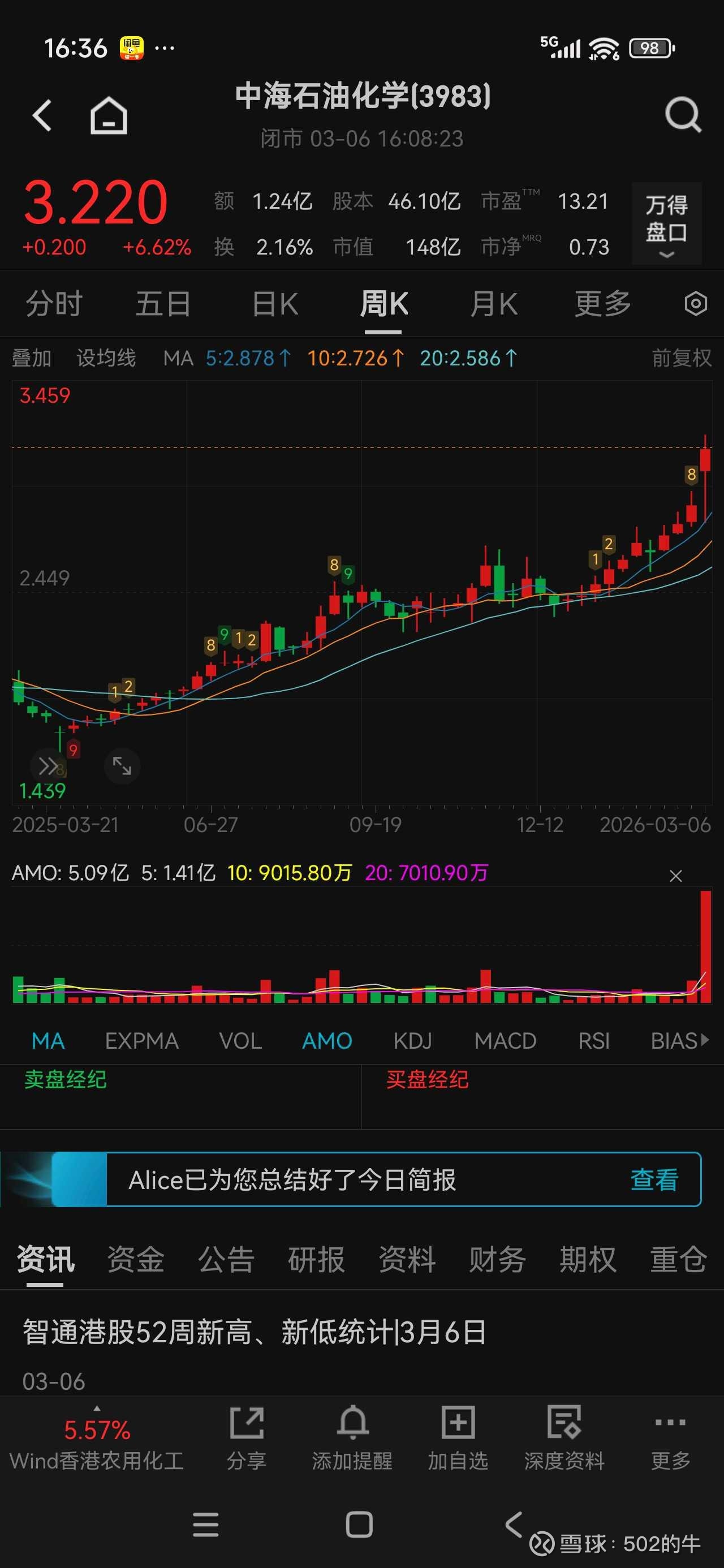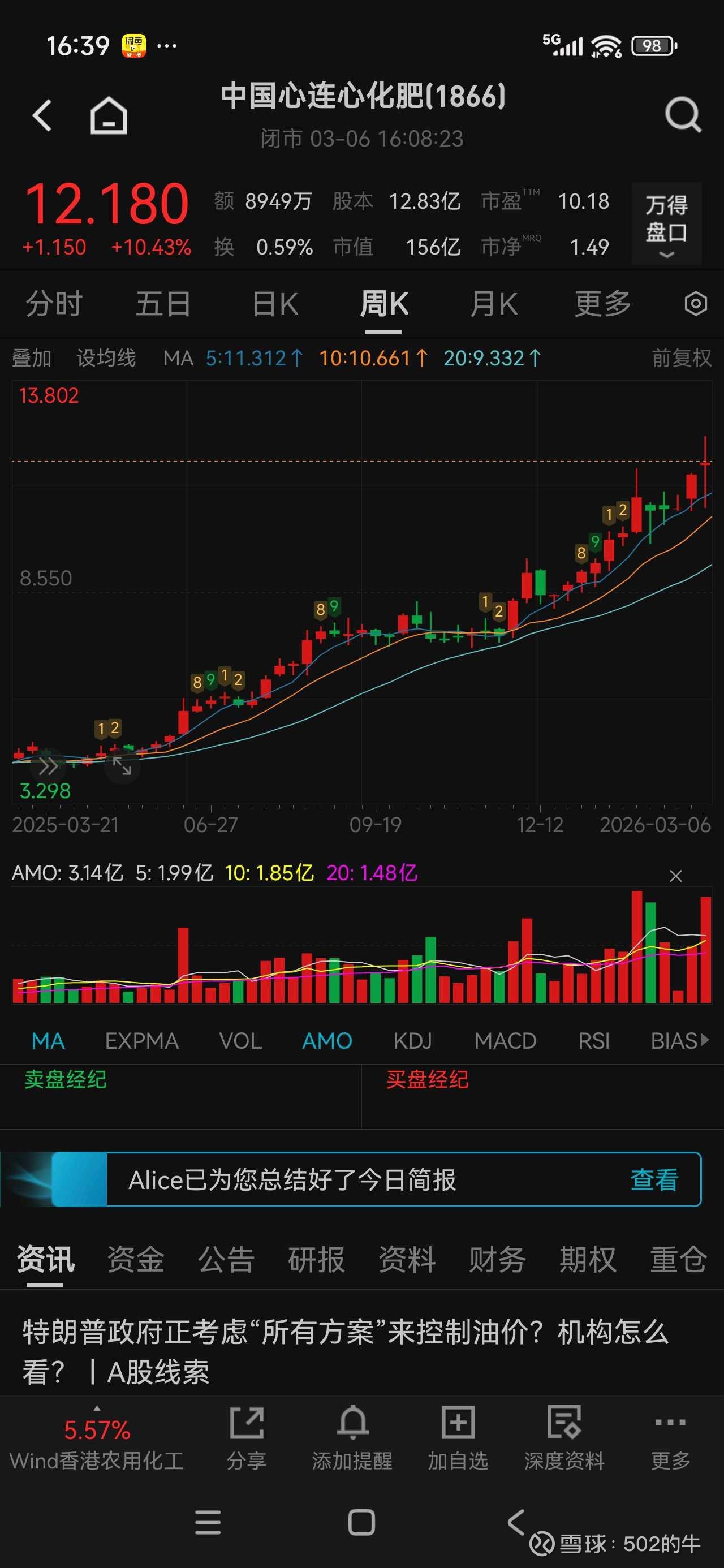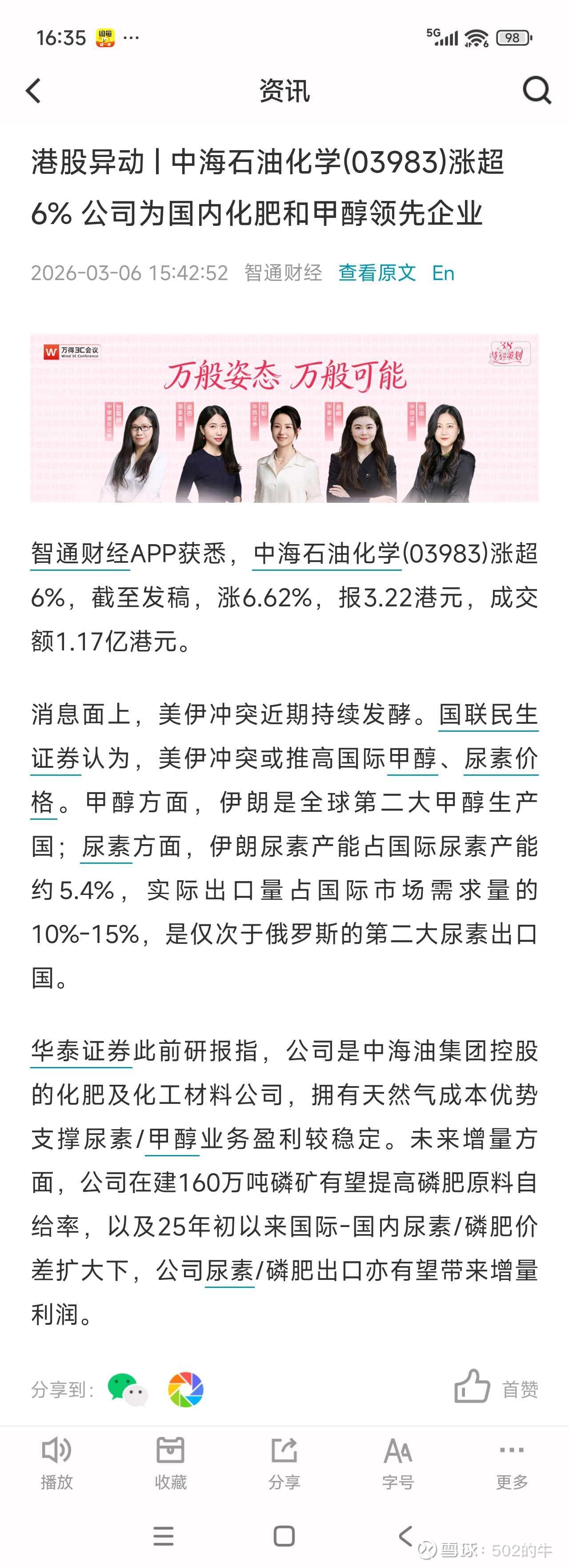 之前帮管我财去参加中海石油化学股东会而买入的股票还没卖,看来也是因祸得福,虽然这个公司治理烂吧(基本不关心小股东权益),但架不住便宜啊。更早是听说中国心连心化肥,2024年的时候看到新闻说这个老板不错,去工厂送货的司机都能领到到免费的盒饭。不过看了下资产负债表,有息负债太高了,就没买。$中国心连心化肥(01866)$ $中海石油化学(03983)$