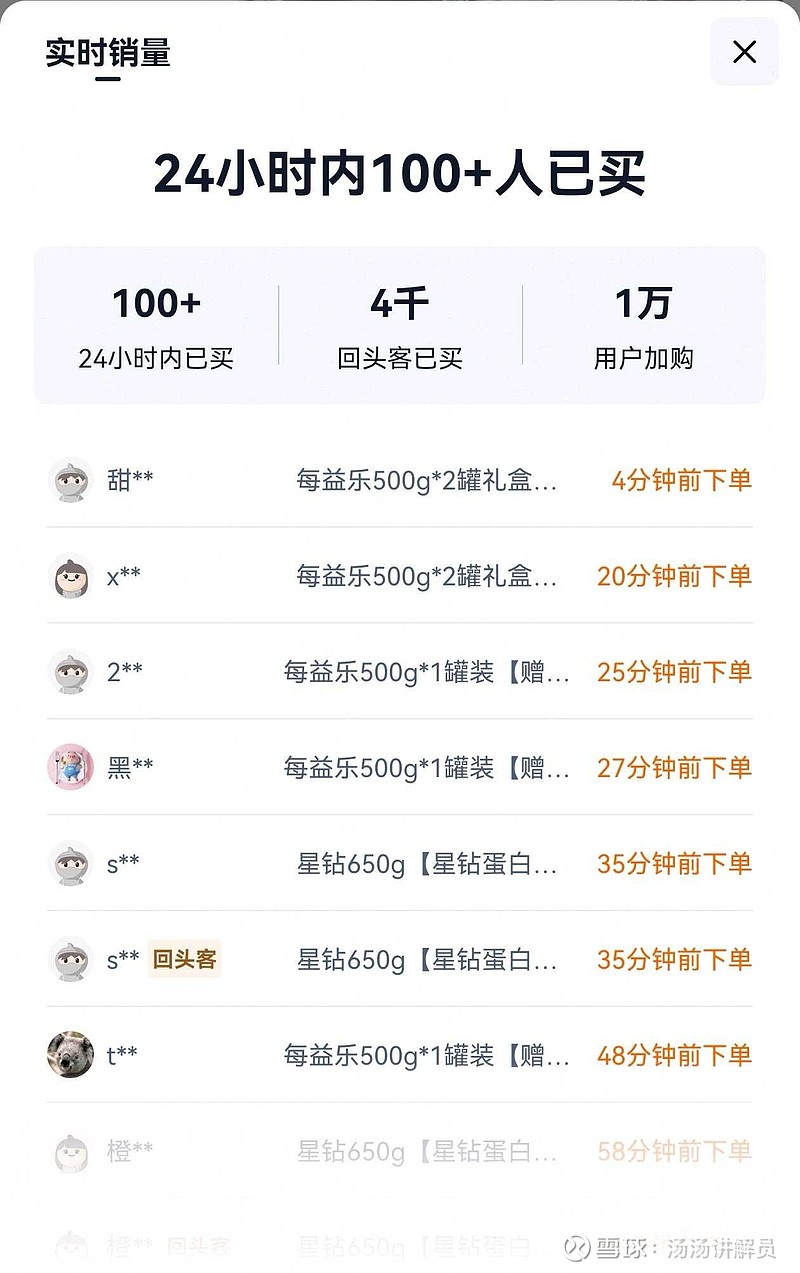 特医全营养粉第四季度第一天开卖,经过这几天跟踪观察,市场接受程度较高,蛋白粉和特医全营养粉具有协同效果,买蛋白粉客户同时也是全营养粉客户,推新效果非常不错