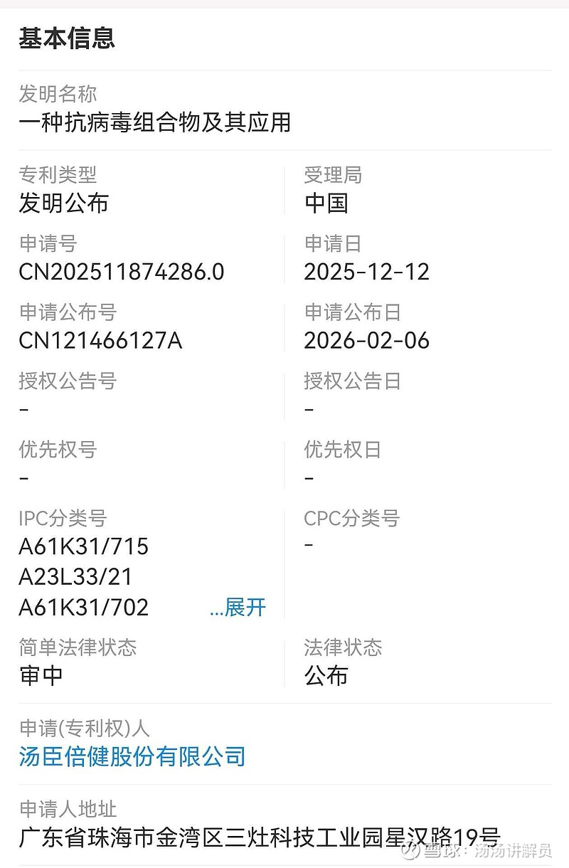 $汤臣倍健(SZ300146)$ 2026年2月6日汤臣倍健公布专利