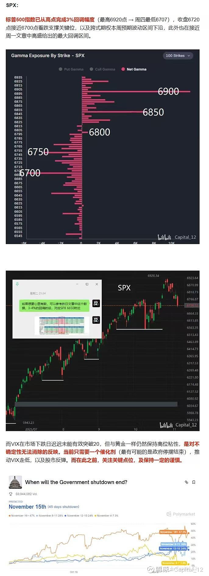 标普500指数已从高点完成3%回调幅度…当前只需要一个催化剂(最有可能的是政府停摆结束)…而在此之前,关注关键点位,及保持一定的谨慎$标普500 ETF-SPDR(SPY)$ $纳指100ETF-Invesco(QQQ)$ $恐慌指数做多-iPath(VXX)$