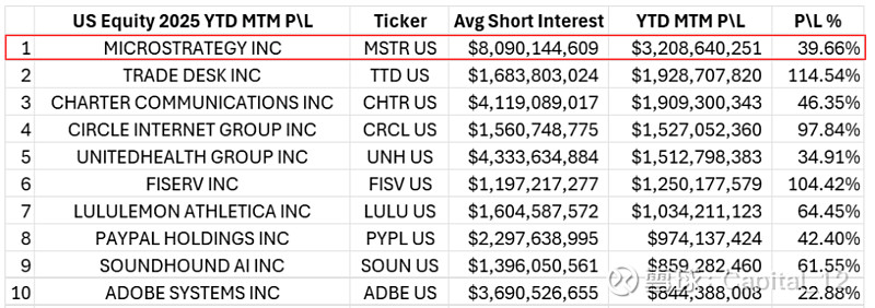 2025年美股空头亏损2170亿美元(按市值计价),每1美元做空资金中,有70%产生了亏损。做空盈利最高的是MSTR,亏损最高的是NVDA。$Strategy(MSTR)$ $英伟达(NVDA)$ $纳指3X做空-ProShares(SQQQ)$