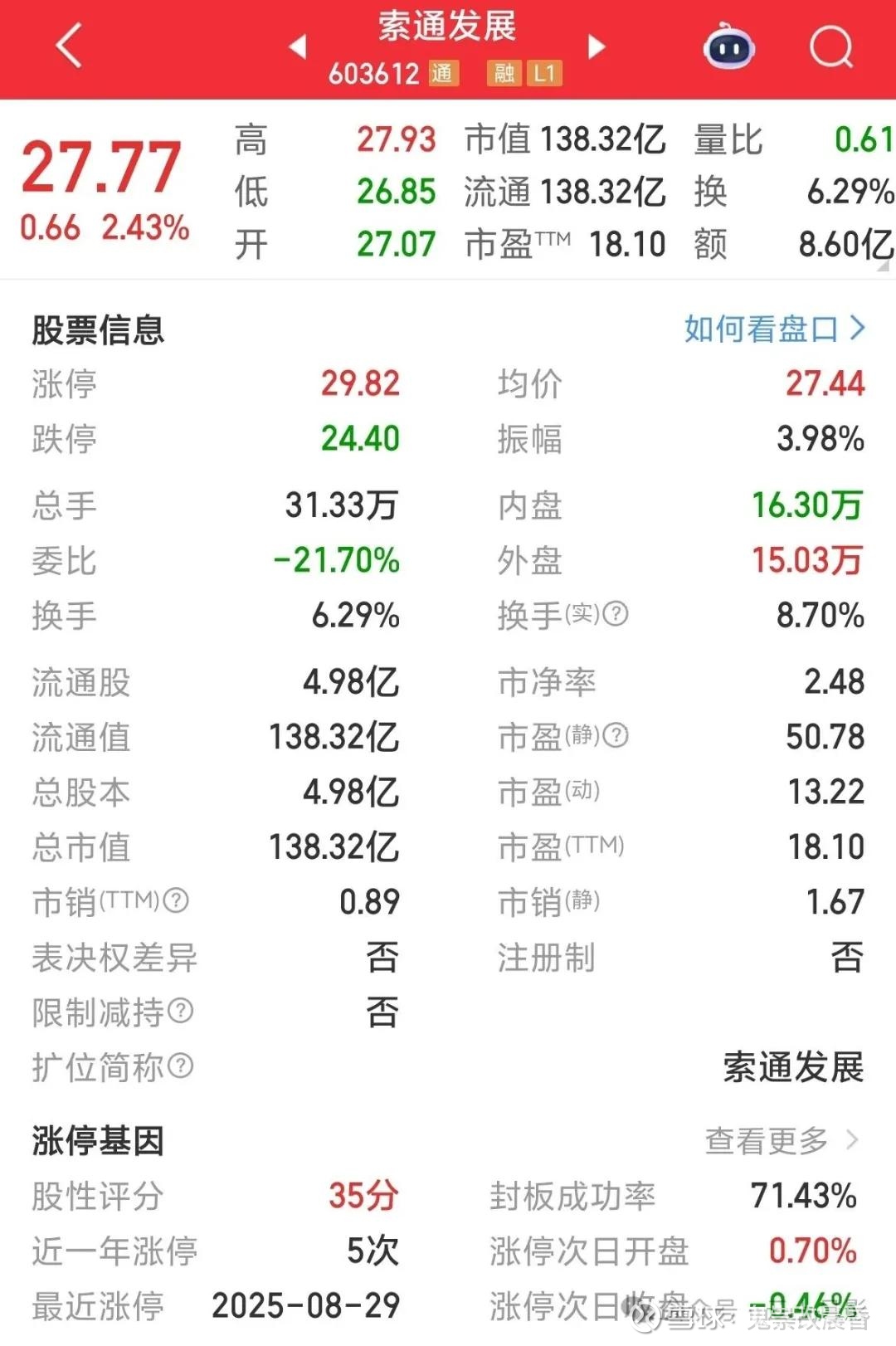 市值截止发文138亿,PE静态50,动态13。