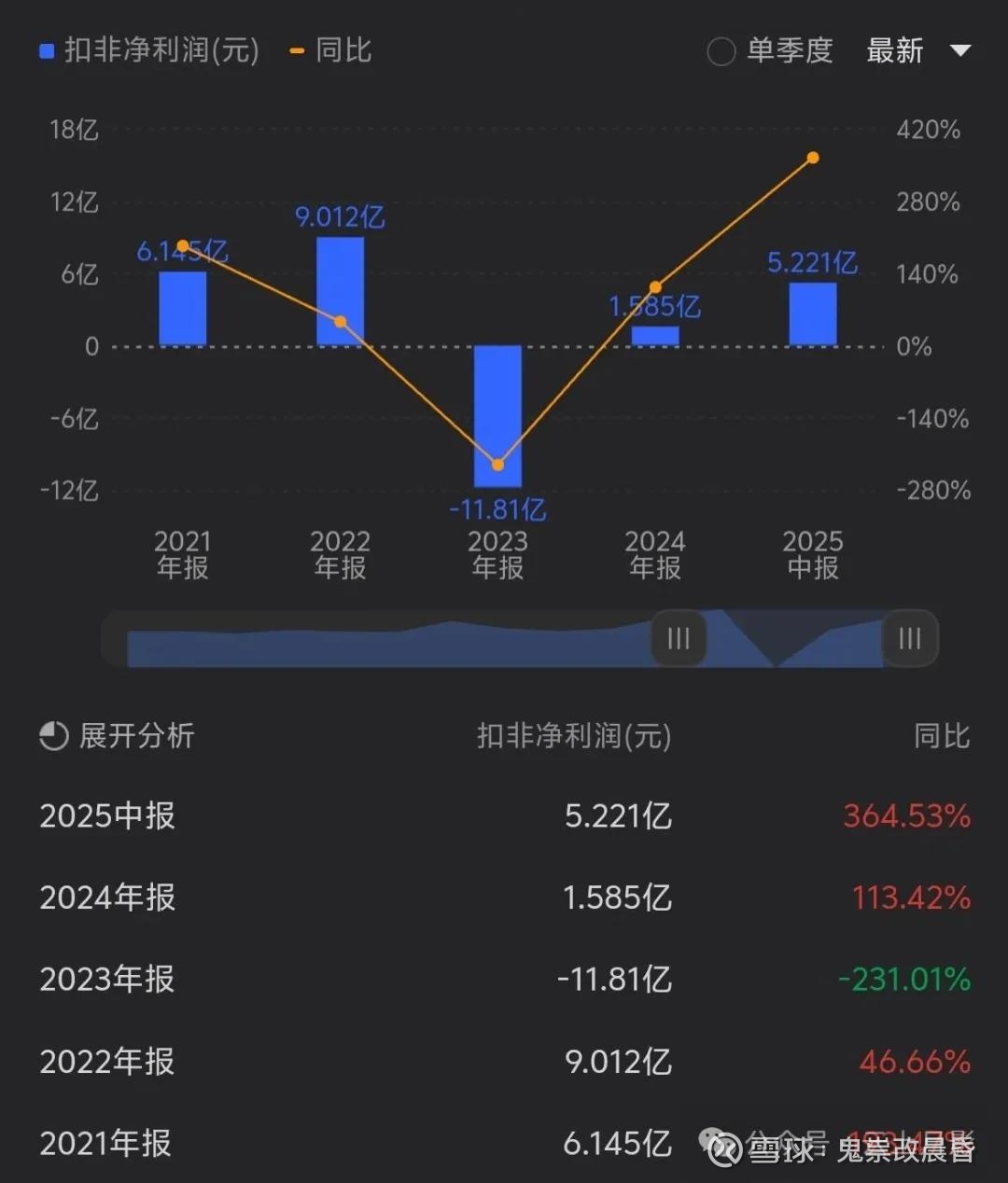 所以我要列出如此数据,接了下来我再转到扣非利润对比就能看到周期的影子解释这一现象了。