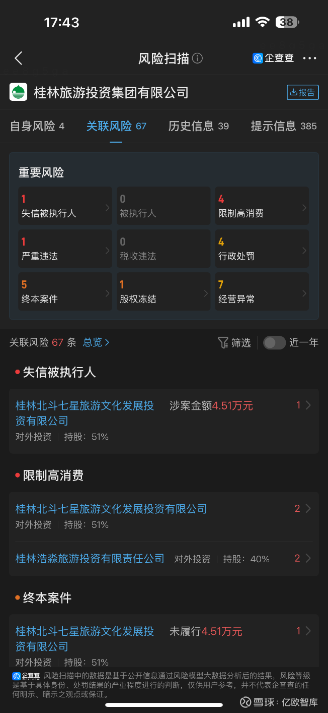 5、象山景区案:象鼻山是桂林城徽,也归属桂林旅投旗下经营。《象山·传奇》是由桂林旅投与广西最大的区直国企及桂林某民企共同出资组建的桂林浩淼旅游投资有限责任公司投资开发,耗资1.6亿元。后由于经营问题停演,该区直国企一纸诉状将浩渺及控股股东桂林旅投告上法庭,胜诉后连本带息近1亿元的执行一直不力,甚至将当时桂林旅投景区管理处既浩渺公司负责人申请执行限高。目前该官司胜诉方区直国企仍继续对桂林旅投追偿中,甚至坊间传言该笔债务可能被视同为不良,成为广西区直国企在桂林投资被关门打狗的一个典型,颇为讽刺。象山项目折射出政策兑现度和契约精神的问题:地方国企在项目失败后不承担责任、不积极善后,任由合作国企的合法权益受损。这种“新官不理旧账”的行为正是当前营商环境大忌,严重挫伤了国有投资者对桂林的信心。