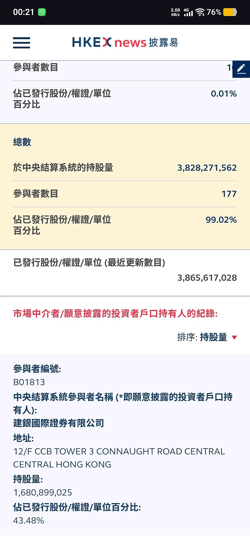 星期三,老胡的建银帐户减持了约3200万股,又增加了。