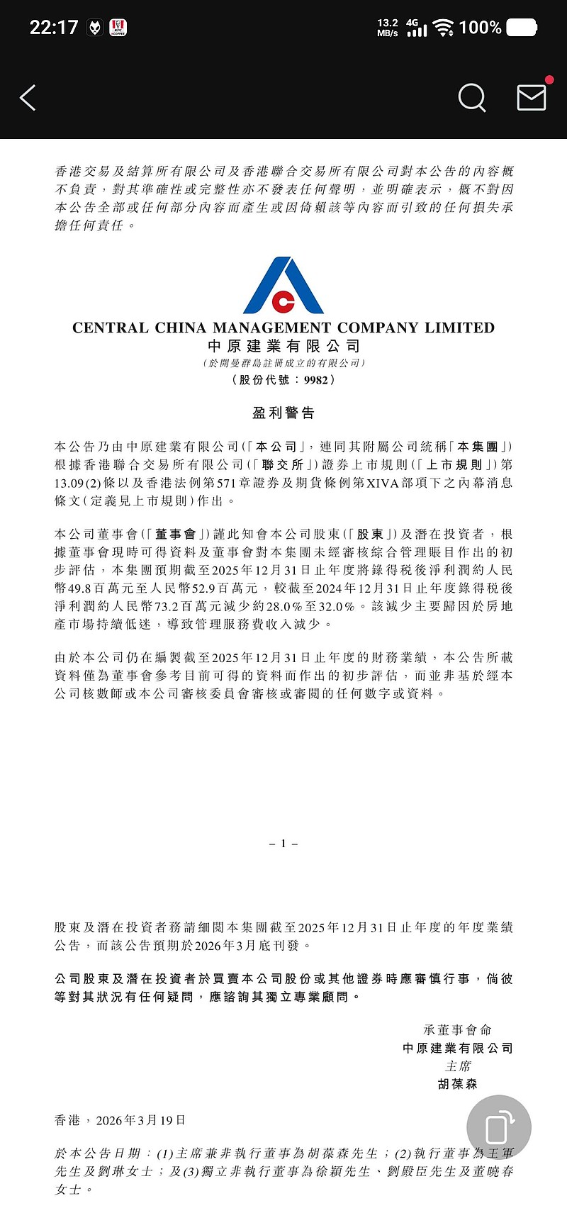 终于盈警了,净利润倒退约28%至5000万左右,比我预计的要好一些。