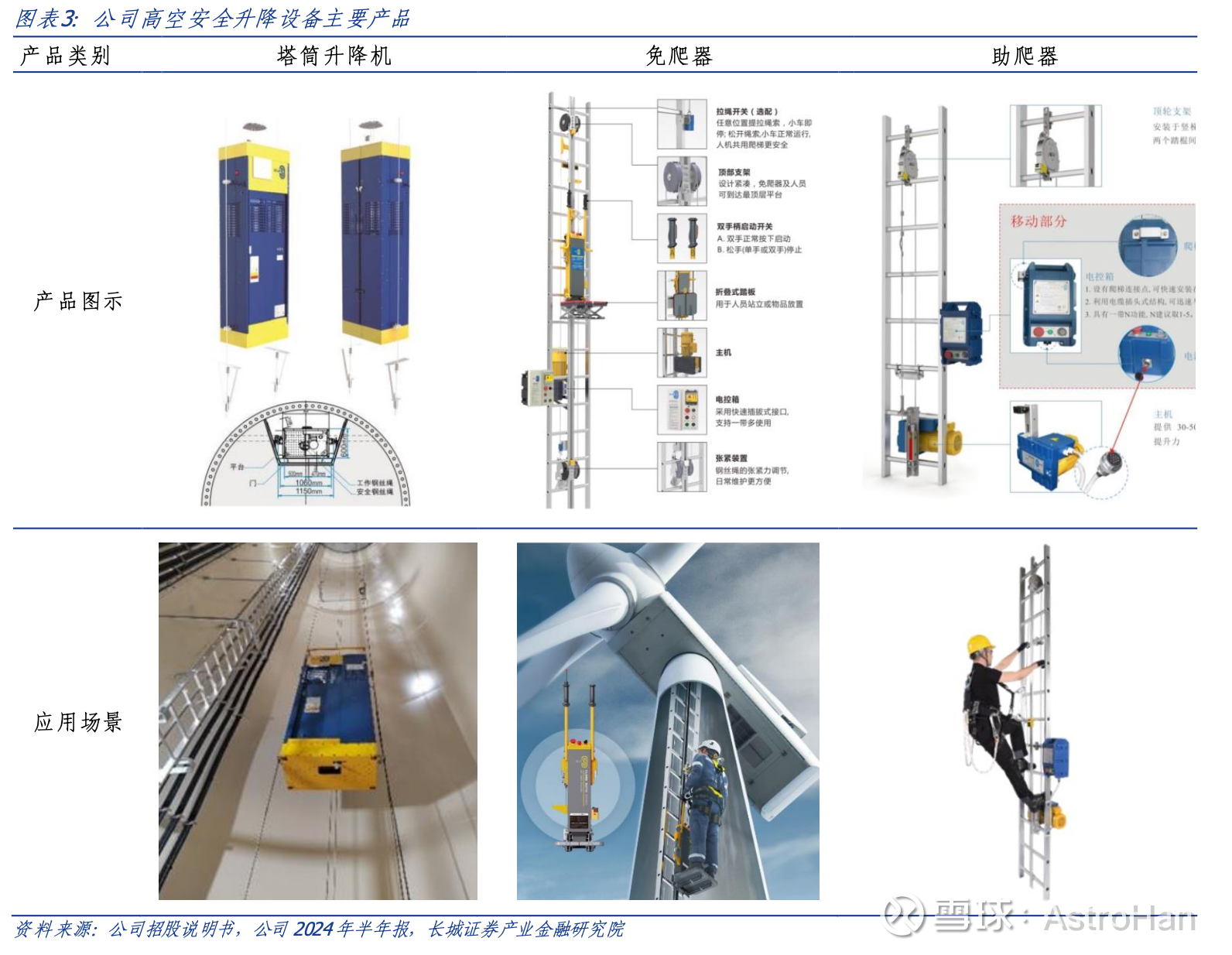 高空升降设备(占比约 67%)——包括塔筒升降机、免爬器、助爬器等,是最核心的业务;