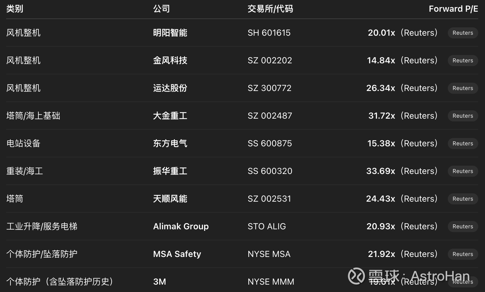 参考同业均值,风电/防坠落同行中位数在前瞻PE 21.4倍左右,作为参考。